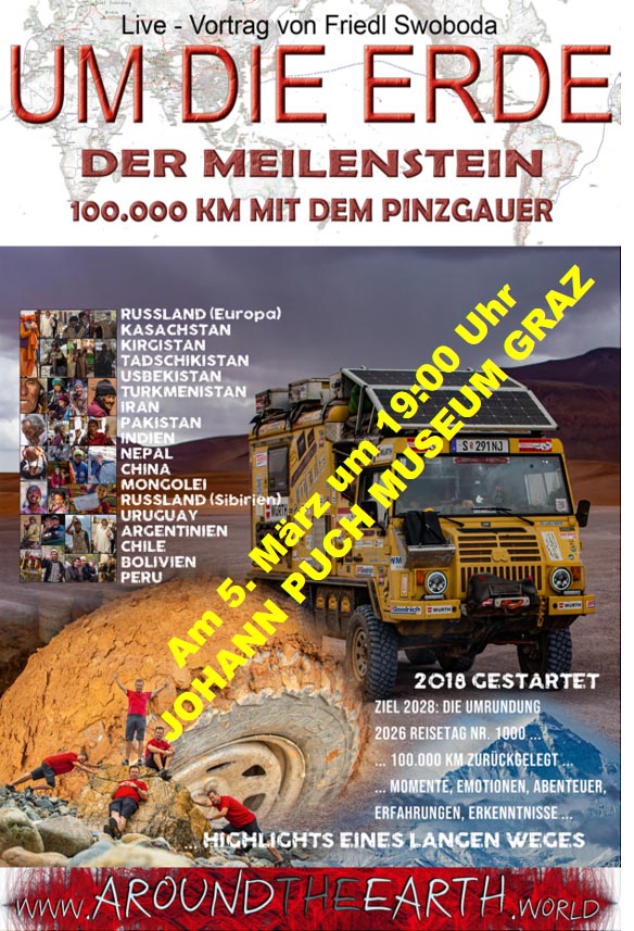 2018 hat „Friedl“ die Tour gestartet mit dem Ziel, bis 2028 mit seinem Pinzgauer die Welt zu umrunden.