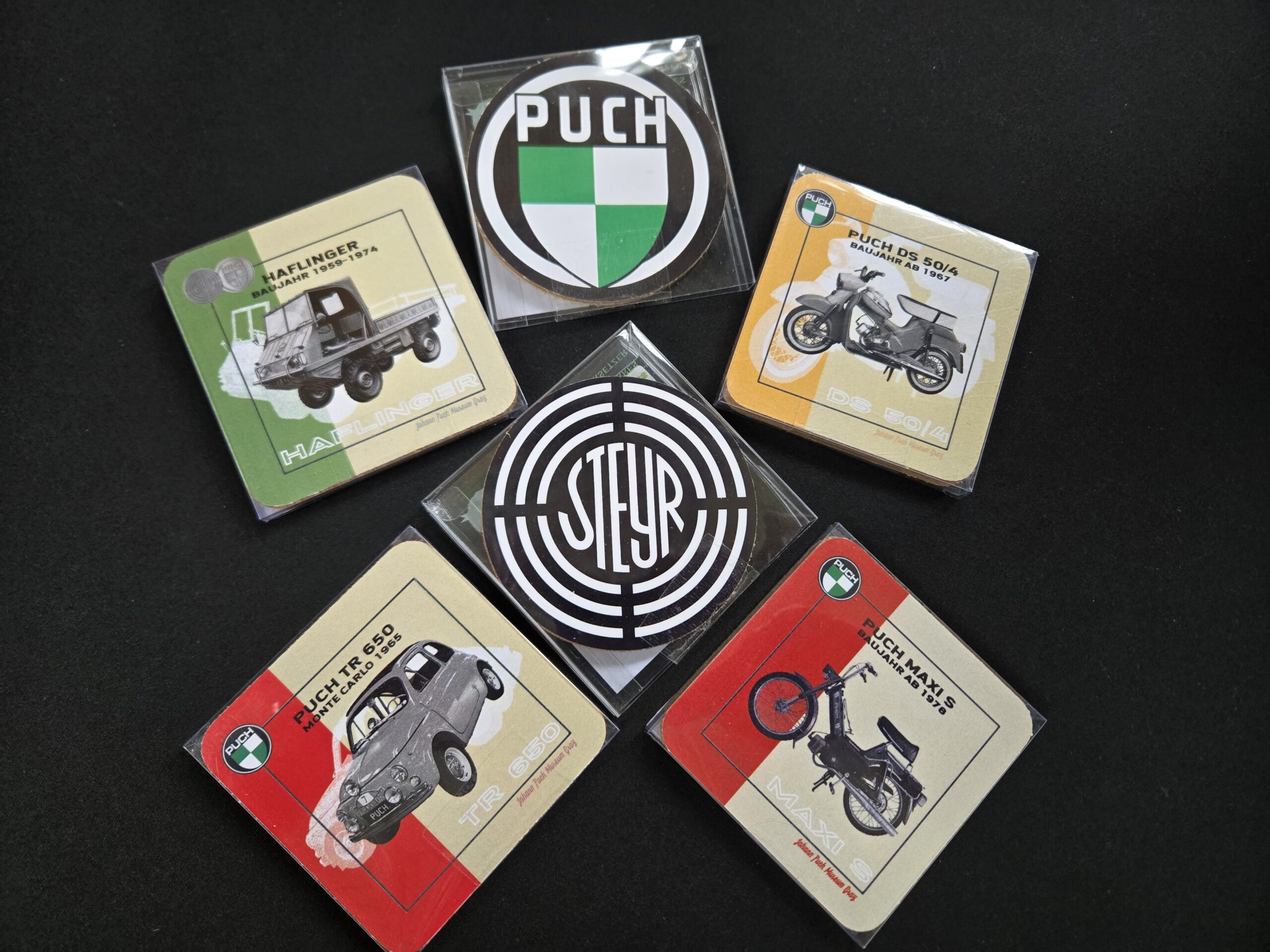 | Ausführung | Rund Steyr-Emblem, Rund Puch-Emblem, Eckig Haflinger, Eckig 650TR, Eckig Maxi, Eckig DS50 |