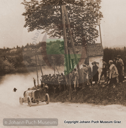 1911 Hat Dr. Ing. Robert Medinger auf Puch Rennmaschine den Geschwindigkeitsrekord herausgefahren. Er war mit dem Motorrad schneller als der schnellste Wagen der Konkurenz.