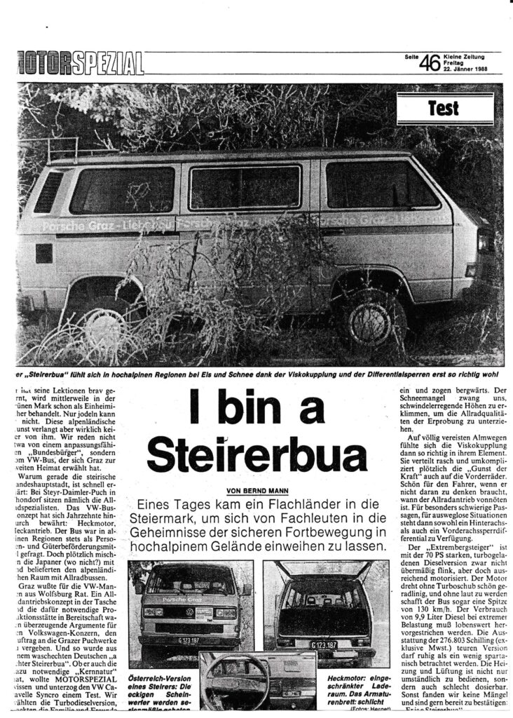 „I bin a Steirerbua“ titelte die Kleine Zeitung beim Produktionsbeginn des VW T3 4×4 Transporters anno 1984 in Graz.